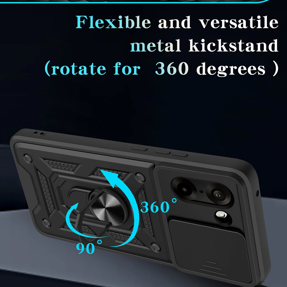 for OnePlus Nord N200 5G Case with HD Screen Protector with Slide Camera Cover, Atump 360° Rotation Ring Kickstand [Military Gra