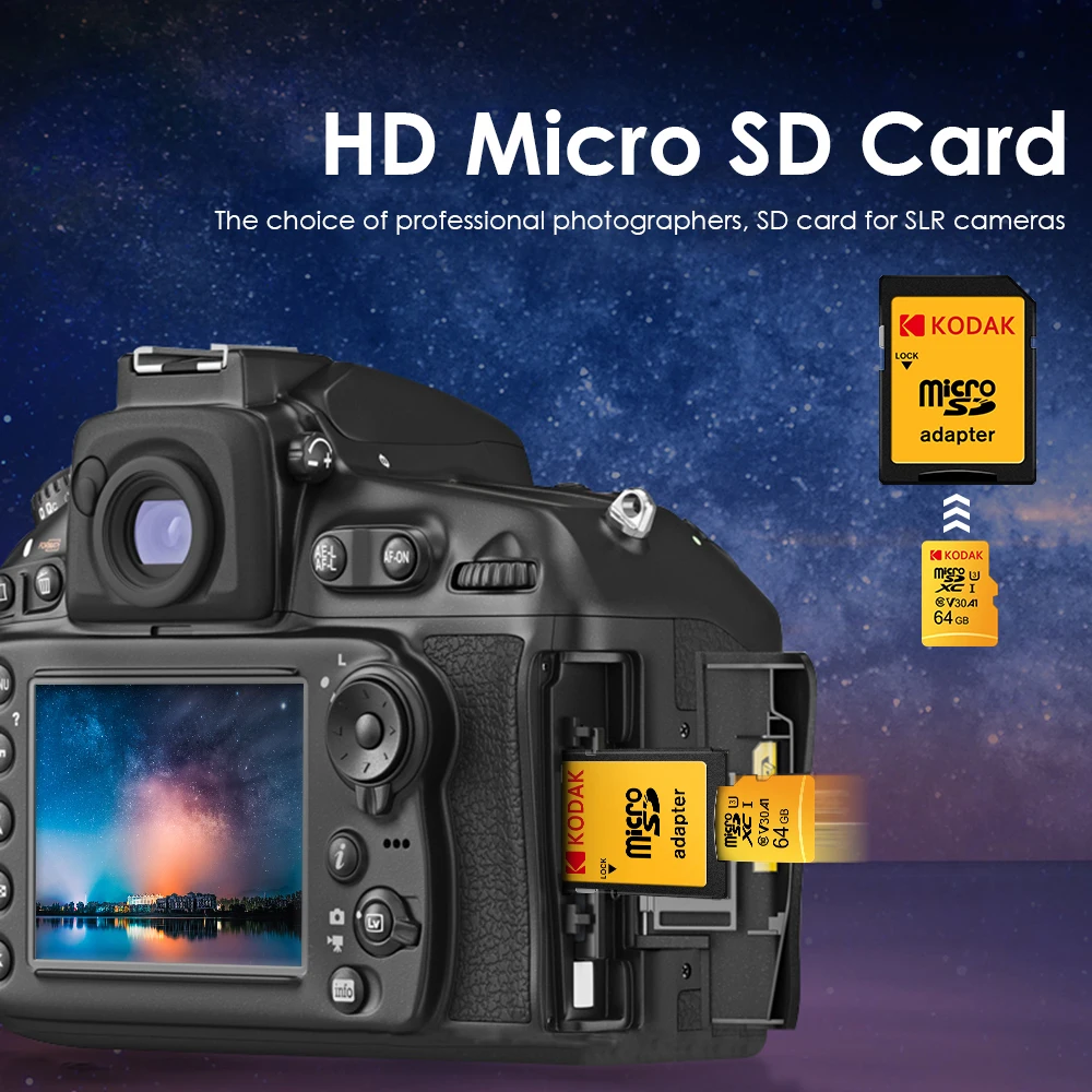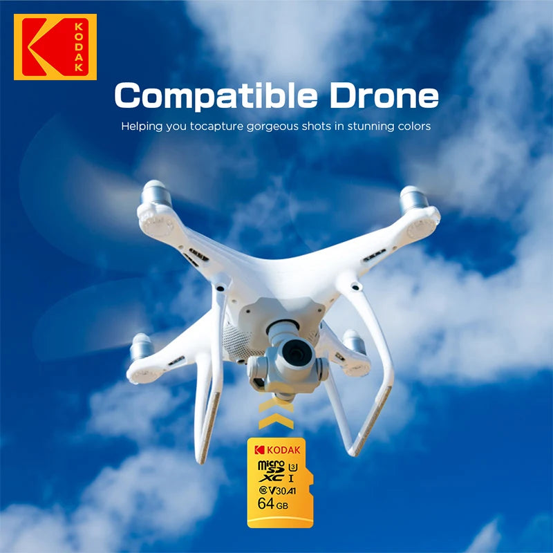 KODAK Micro SD Memory Card 128GB 100MB/s Class 10 U3 UHS-I 64GB Mini TF SD Card 4K HD for smartphones, dash recorders, drones,